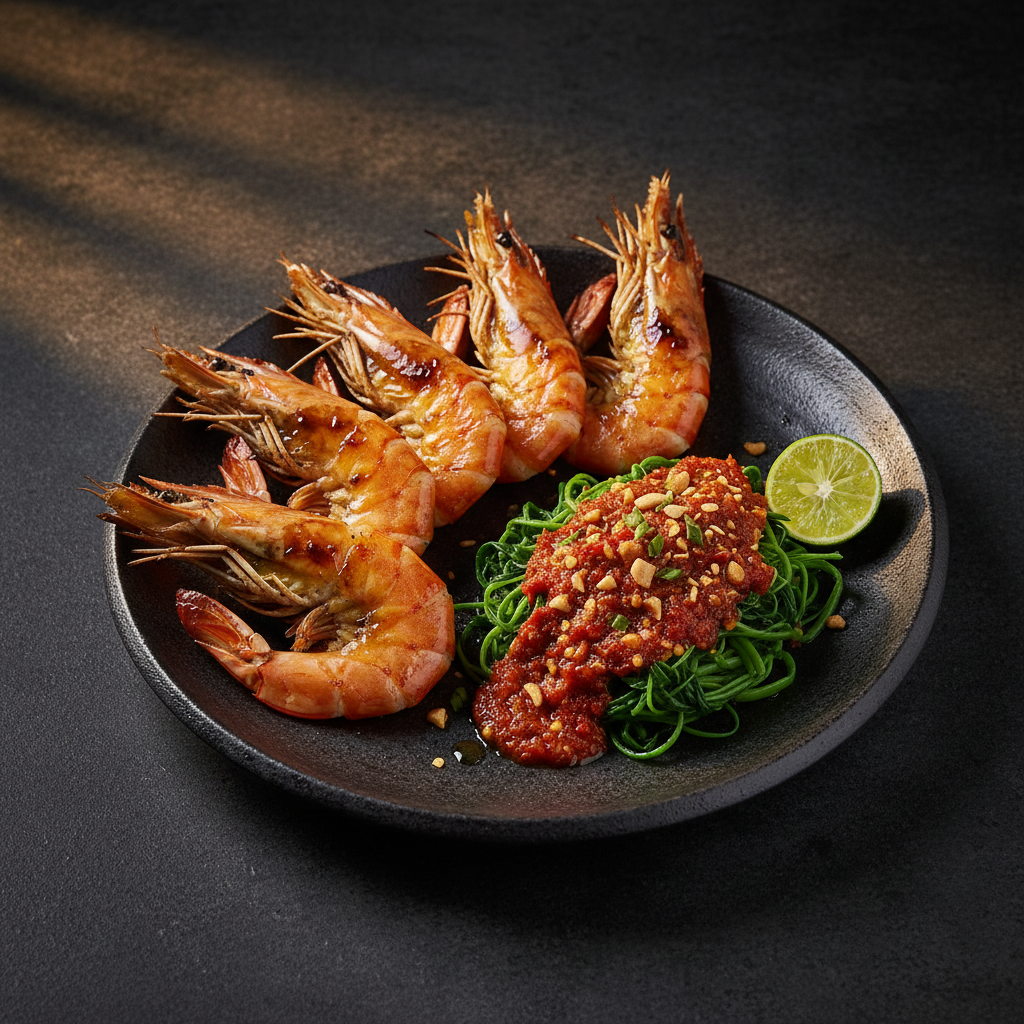 Nikmati kelezatan Udang Bakar + Plecing khas Mira Bali, perpaduan sempurna antara cita rasa laut dan kesegaran sambal khas Nusantara. Udang segar dibakar dengan bumbu rempah pilihan hingga matang sempurna, menghasilkan aroma smokey dan rasa gurih yang kaya.